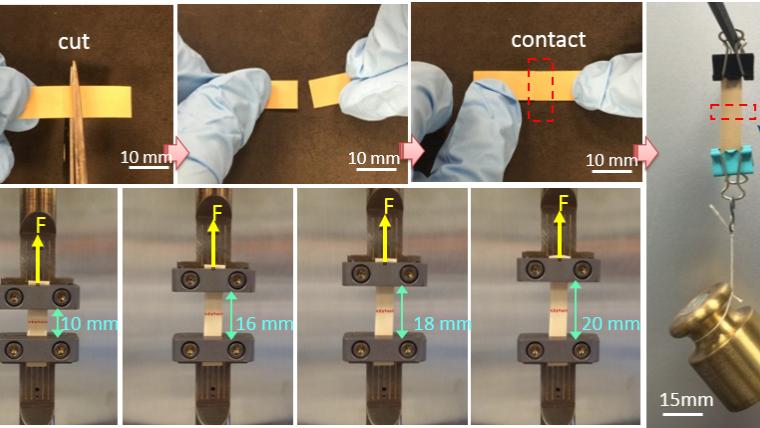 ペンシルベニア大学などの共同研究チームは、自己修復機能を備えたエレクトロニクス用の素材を開発しました。この素材は、ハサミで半分に切っても80℃で30分ほど温めれば元通りくっつきます。断線と修復を繰り返しても、導電性や柔軟性は元のままです。