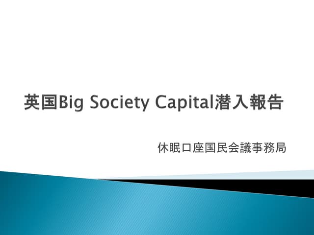 日本とイギリスにおける休眠預金活用の最前線~Big Society Capitalのすべて