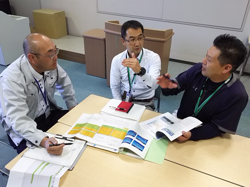 打ち合わせする3人。右端は蒲原文崇さん