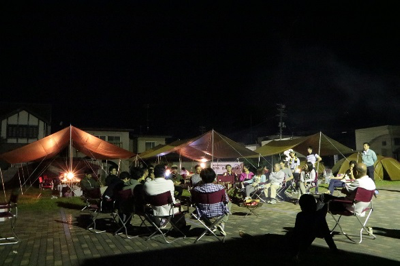 夜になるとまだ街灯以外の明かりは少ない浪江駅前通りの一角で、9月中旬、突如テントが張られ、キャンプファイヤーが焚かれた。「なみえ駅近キャンプ」というこのイベントは、役場職員はじめ有志による実行委員会が企画したものだ。みんなで浪江のまちづくりを考えよう、というのが目的だが、堅苦しいものにはしたくなかった。できれば一緒においしいものを食べながら、お酒を飲みながら、町内外のいろいろな人に来てもらって自由に意見交換したい。しかし、町内にはまだ大勢が入れる飲食店はなく、町民以外の訪問者が宿泊できる施設もない…