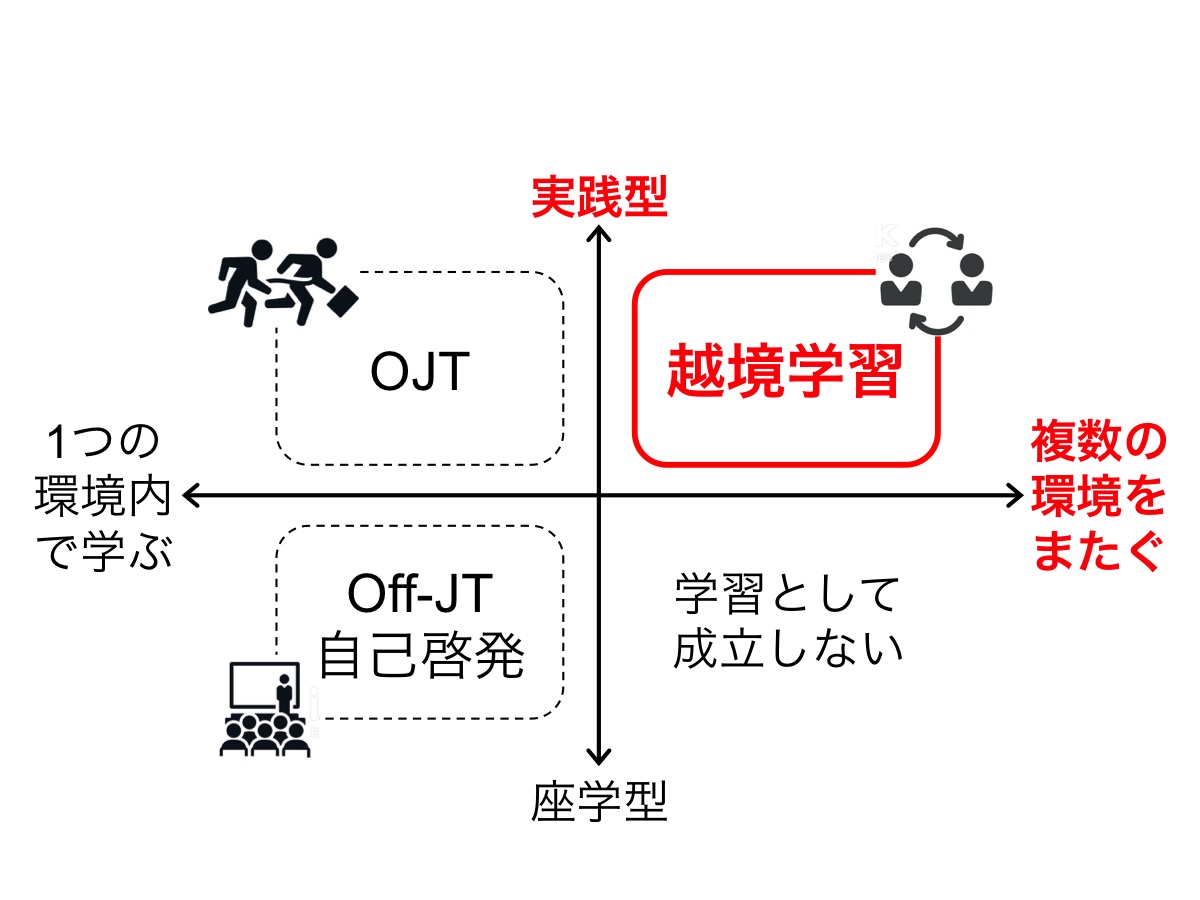 上述の石山教授は越境学習の特徴について①複数の場をまたいで学習すること、②実践型の学習であること、の2点を上げています。