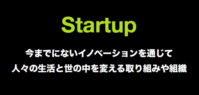 ではスタートアップとは何か。それは、「今までにないイノベーション(革新)を通じて、人々の生活と世の中を変える取り組み」です。言葉通りの「スタートして間もない事業」という意味ではなく、”スタートアップ”とは、創業から短期間で急成長し、事業を通して人々の生活やライフスタイルをガラッと変えてしまうインパクトを秘めた、イノベイティブ(革新的)な事業であるということです。