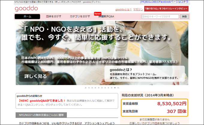 gooddo”WEBサイトスクリーンショット 「誰でも、今すぐ、簡単に無料で支援することができるソーシャルグッドプラットフォーム」を自称する「gooddo」。どういう仕組みになっているのだろうか。