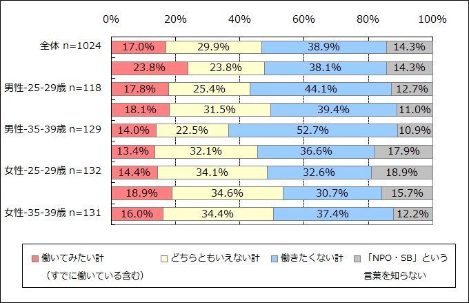 20代・30代の若者の17.0%は”NPO・ソーシャルビジネスで働いてみたい”
