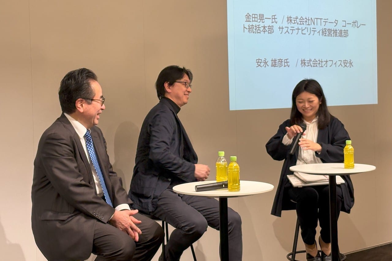 登壇者は、NTTドコモ・ベンチャーズ 代表取締役社長 笹原優子氏、株式会社竹中工務店 まちづくり戦略室 副部長 岡 晴信氏、「スタンフォード・ソーシャルイノベーション・レビュー 日本版」共同発起人 井上 英之氏の3名だ。