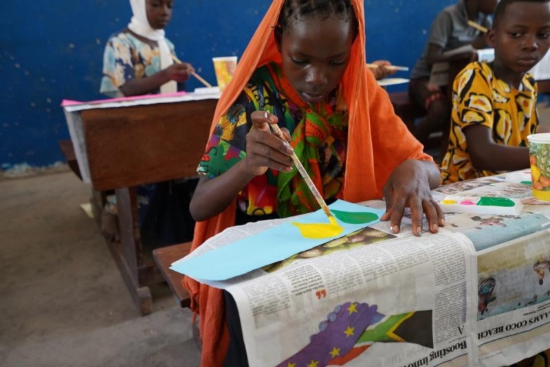 日本のアーティストたちがプロジェクトに加わり、アフリカの子どもたちのアートを絆創膏で表現した