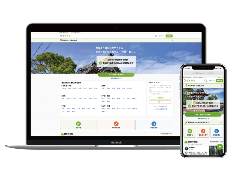 御朱印・神社お寺の検索サイト「ホトカミ」を運営しています。飲食店を探すときによく使われる「食べログ」の神社・お寺版をイメージしていただけるとわかりやすいかと思います。