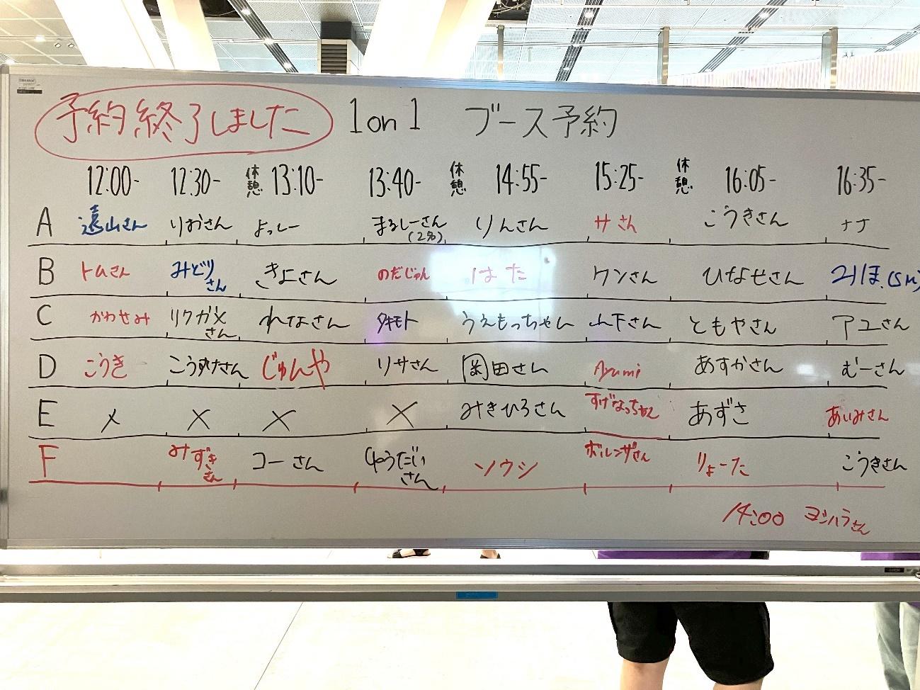 起業家に自分のアイデアを直接話し、アドバイスを受けられる「1on1」は、開場後まもなく予約が受付終了になった。