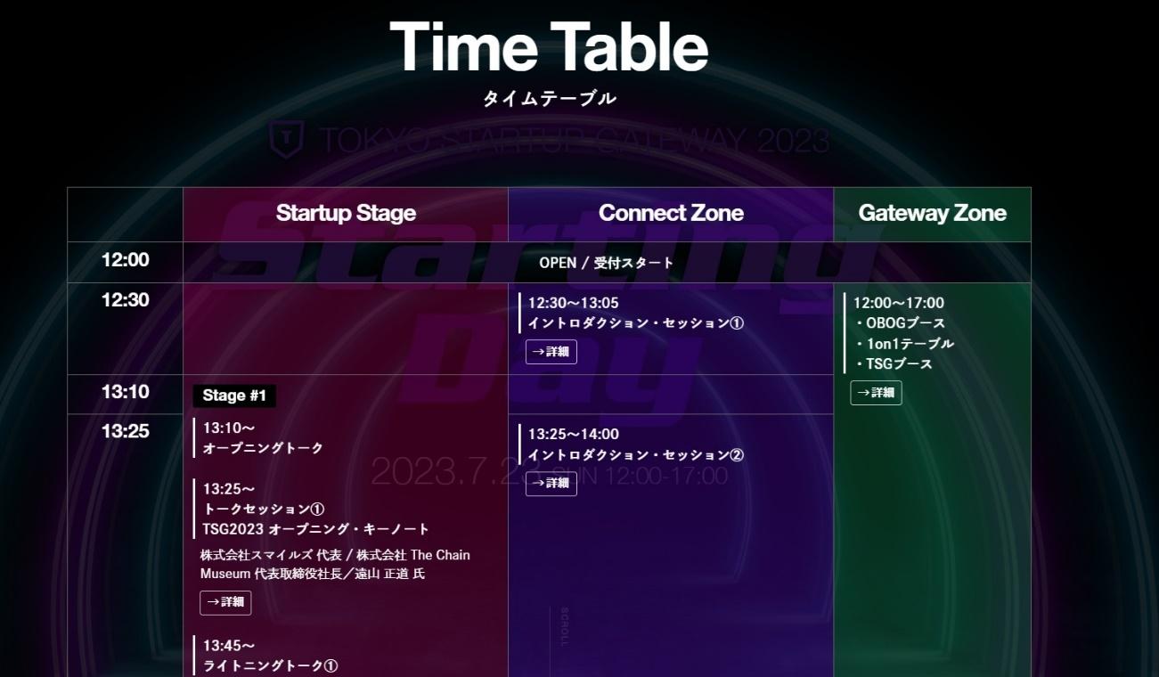 「TSG2023」Starting Dayで行われたタイムテーブルの一部