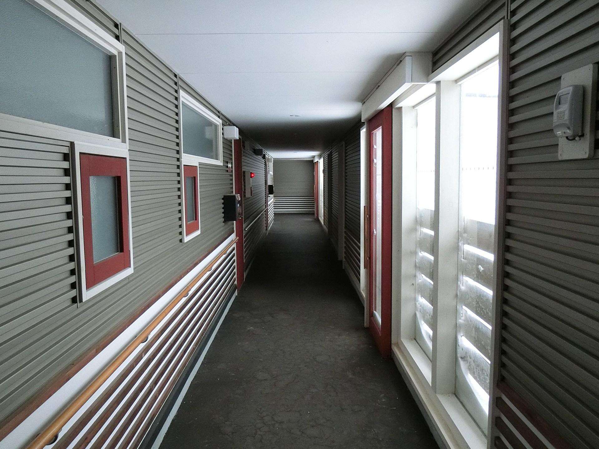 集合住宅2棟28戸(うち宿泊施設2戸)はそれぞれ屋根と壁で覆われた渡り廊下でつながっており、玄関先の除雪が不要だから高齢者でも暮らしやすい。老朽化した住宅に住む周辺の住民も段階的にこの住宅に移り住んでもらった。免許を返納した高齢者のためにはオンデマンドタクシーも走る。