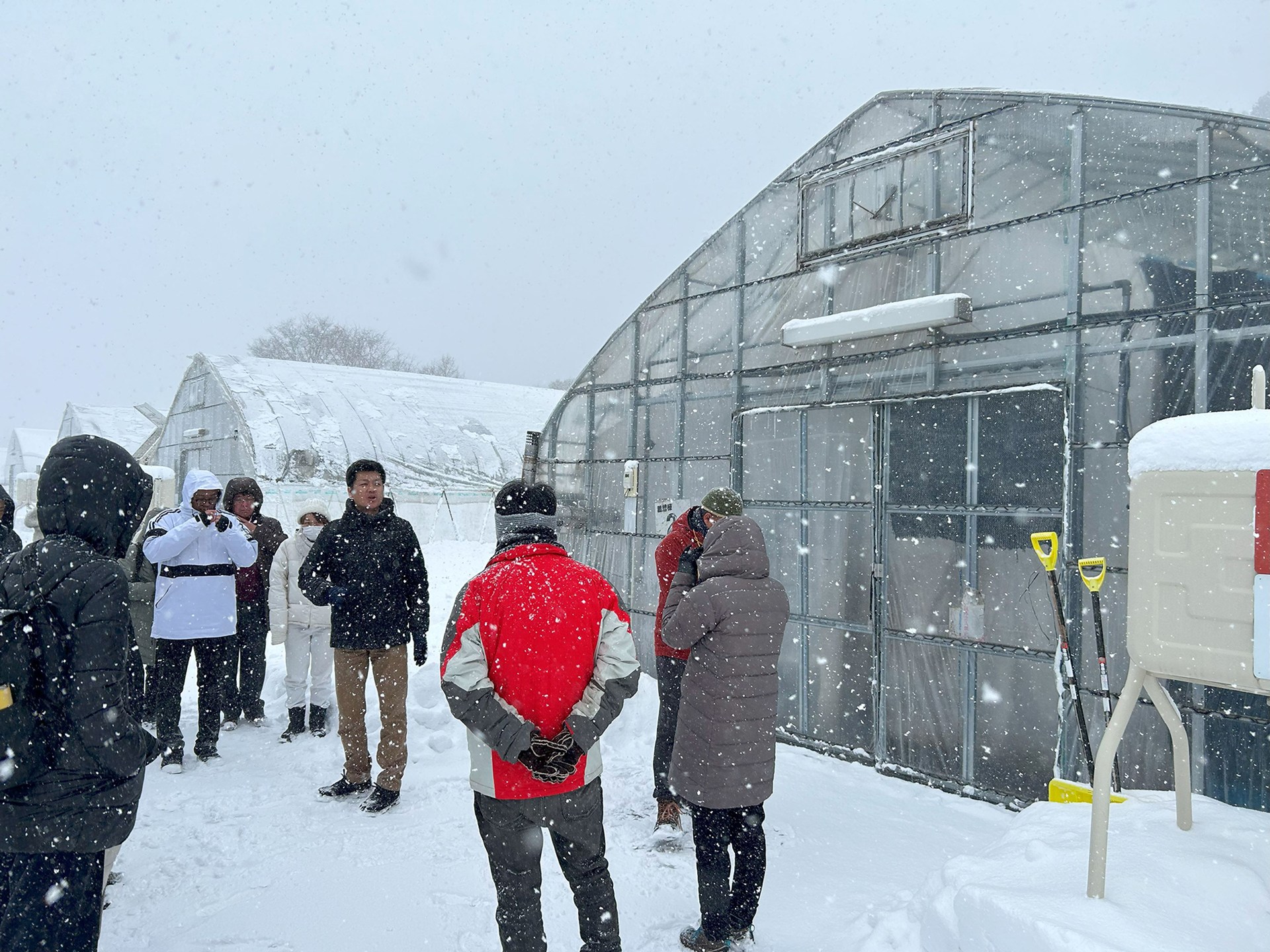続いて一行は、バイオガスによるエネルギー自給を実現しているという松岡牧場を視察した。海のない下川町では農業も主要産業のひとつ。その生産額の約7割を酪農が占める。松岡宏幸社長が経営するこの牧場は町内の酪農家の中でも最大規模という。