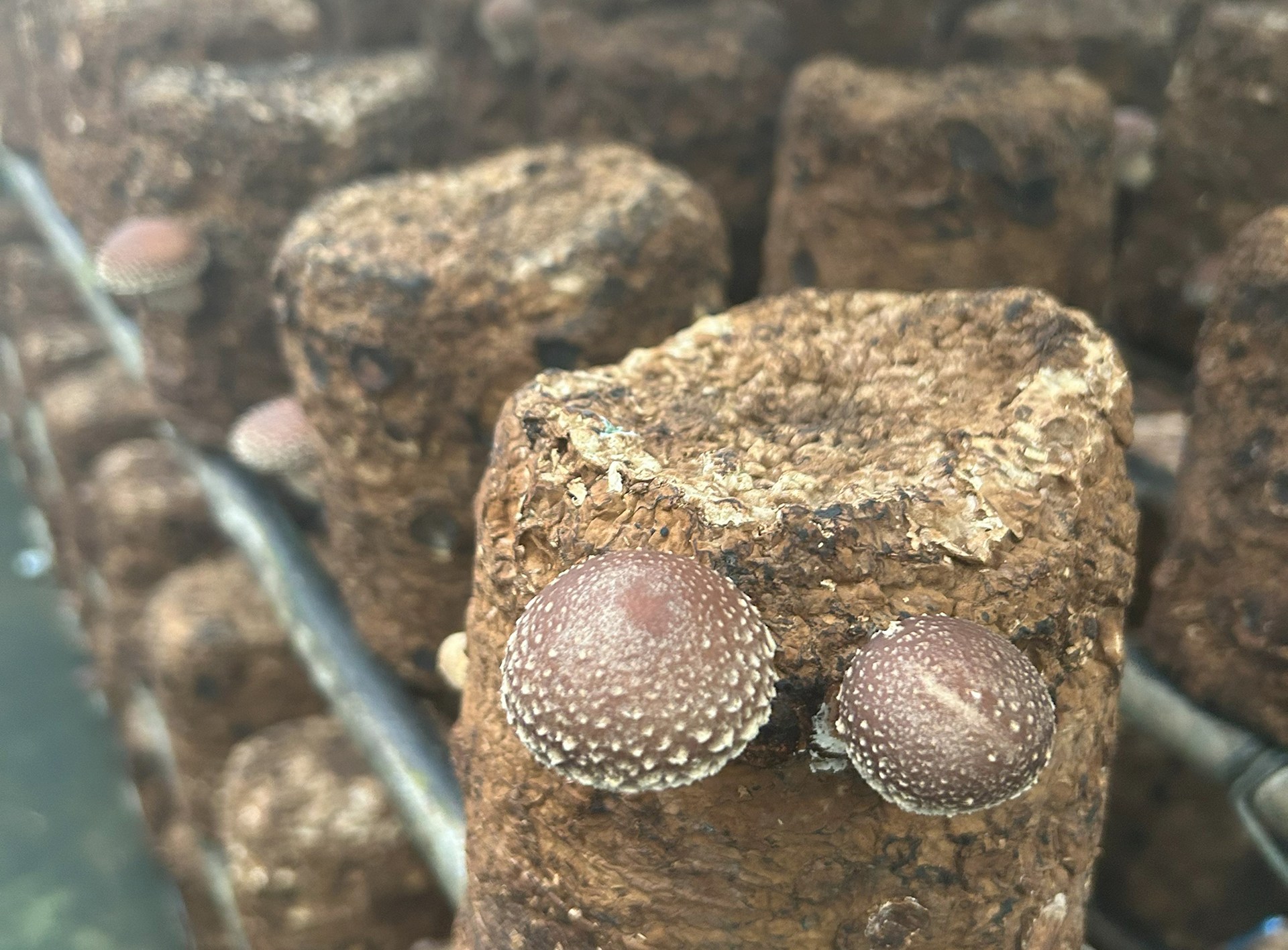 冬場が需要期のシイタケ。このハウスで年間約100トンを生産する。