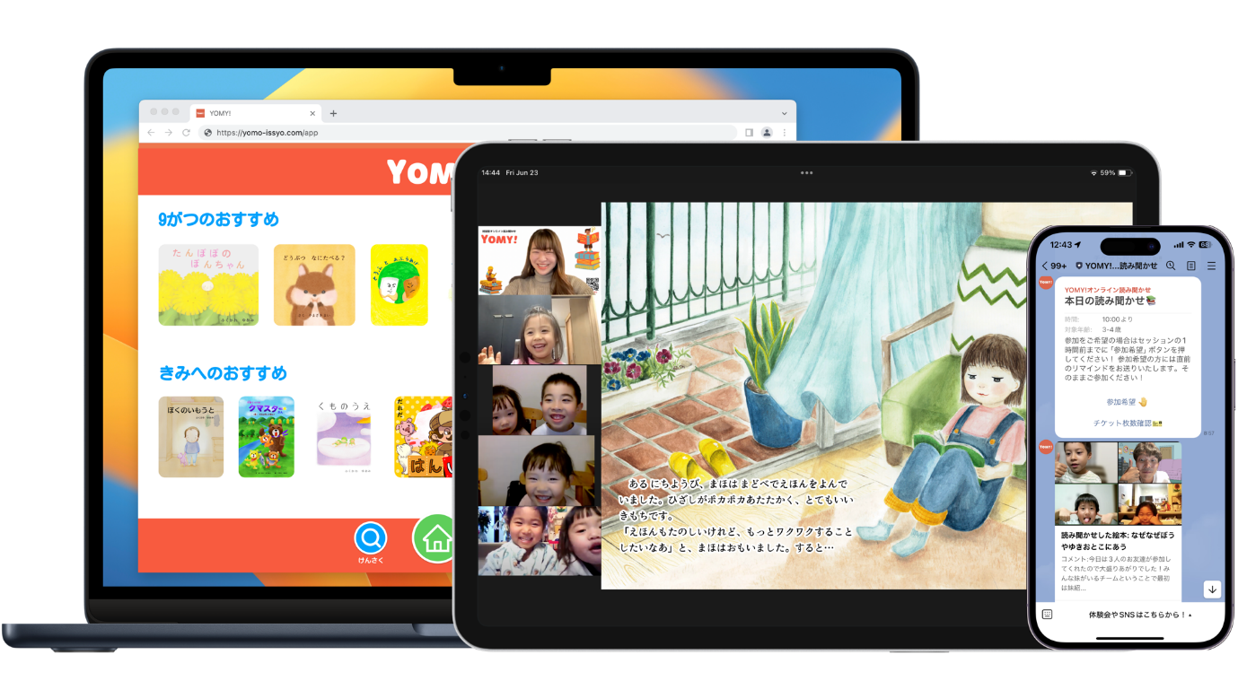 次世代の子供たち向けに絵本をもとにしたオンラインレッスン「YOMY!」を展開しています。