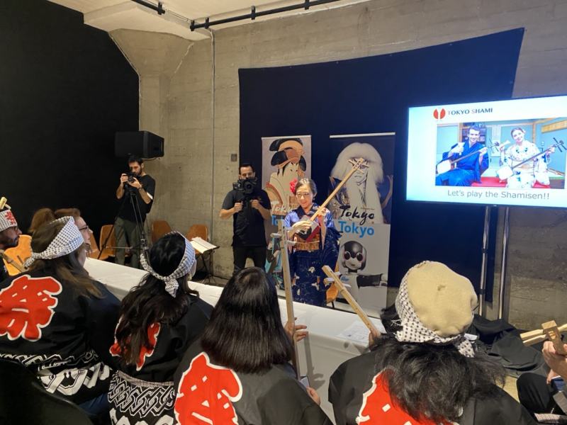 海外にて現地の方に体験してもらった三味線ワークショップは好評だった