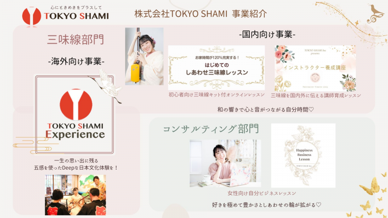 三味線をもっと気軽に多くの人に楽しんでもらい「衰退している日本の伝統文化である三味線を未来に繋げていきたい」そんな想いで30代で起業し、外国人向けに三味線ワークショップをスタートさせた齋藤さん。