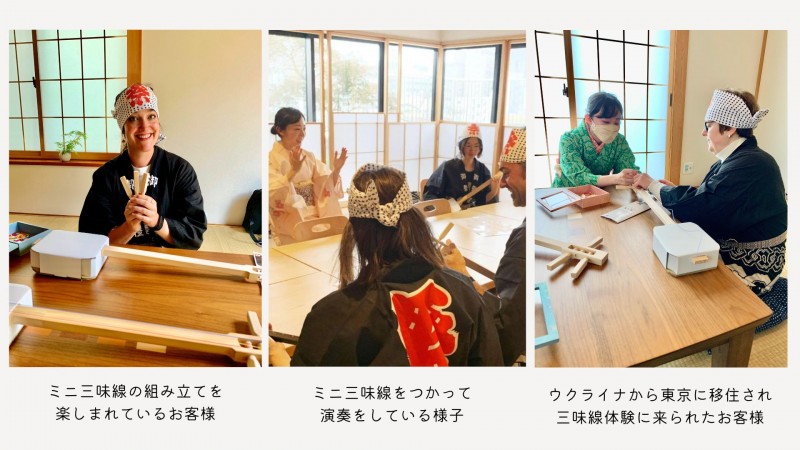 ターゲットは主に若い日本人女性で、訪日外国人のワークショップと同じように自分でミニ三味線をつくって演奏できるようになります。日本人向けには、時間をかけた丁寧なサポートを心がけ、動画とzoomを掛け合わせてレッスンをしています。