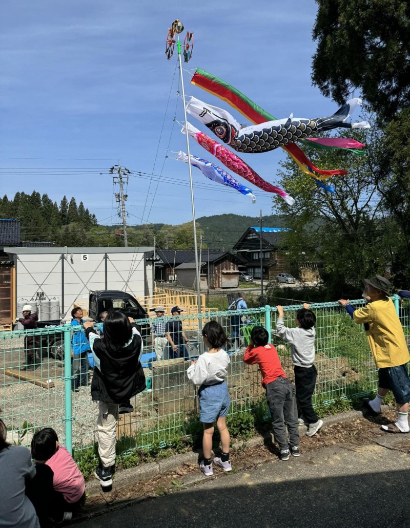 5月の連休には、こいのぼりをあげた。子どもたちはそれぞれ何かを感じている様子