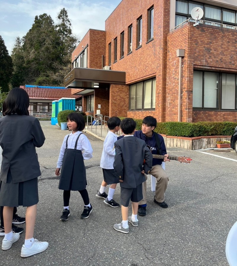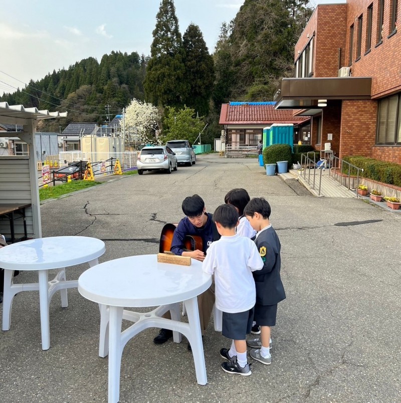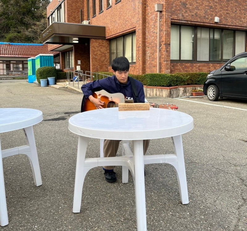 僕は昔から音楽が得意で好きで、いつもギターで子どもたちと歌うんですね。輪島のこども部屋にも、いつものようにギターを持って行ったら、「おもしろー!」「何か弾いて!」と喜んでくれて。子どもたちの好きな曲を何曲か弾いたら、もうあっという間にみんなと仲良くなれたんです。