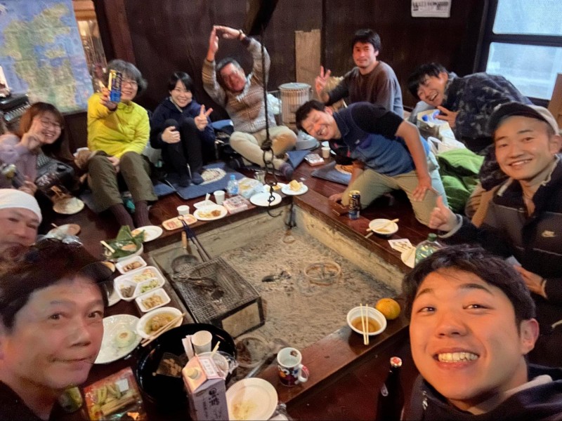 のと復耕ラボの右腕やボランティアスタッフたち。毎晩のように、一緒に囲炉裏を囲んで語り合い、笑い合った。