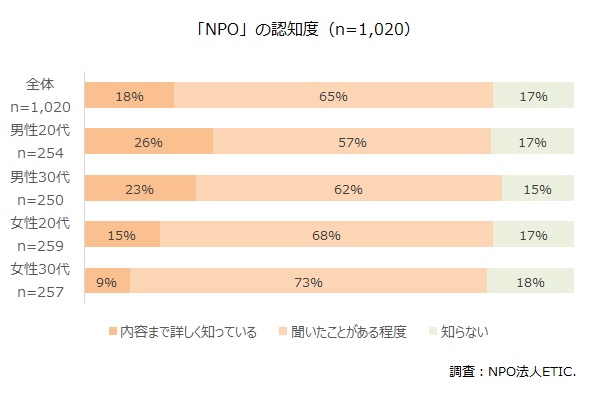 1. 男性20代のおよそ4人に1人は、NPOについて「内容まで詳しく知っている」