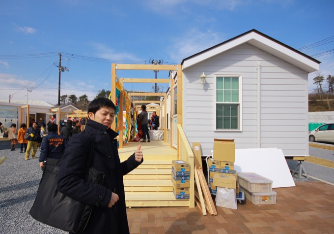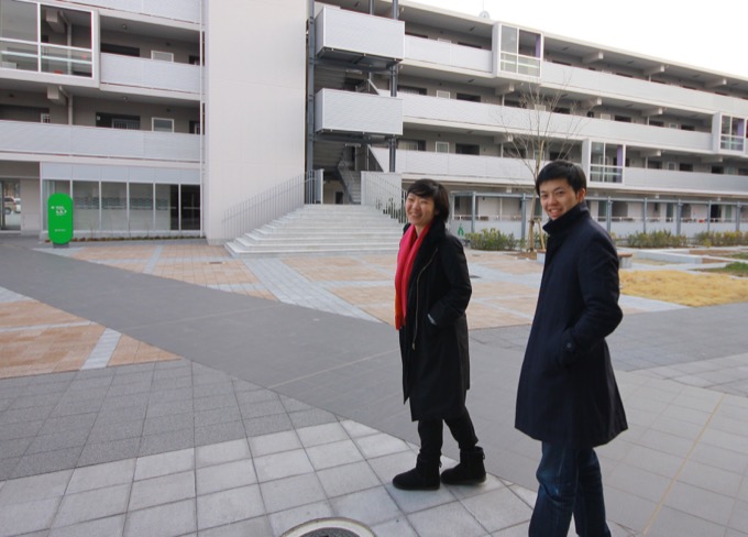 女川町災害復興公営住宅での、松岡さんと上原さん