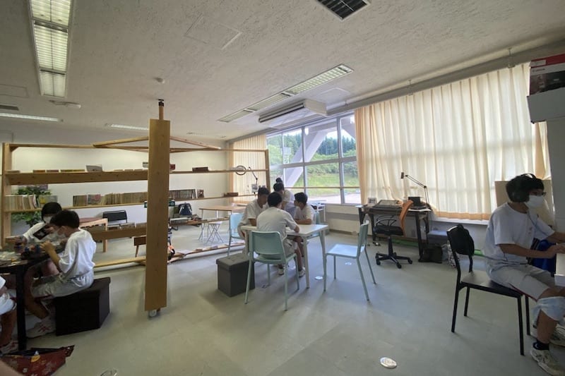 もともと空き教室だったこの空間で、佐藤さんはデザイン制作やオンライン会議など通常業務を日中に行い、放課後は自習室・フリースペースとしてオフィスを開放し、生徒と交流する時間をつくっています。