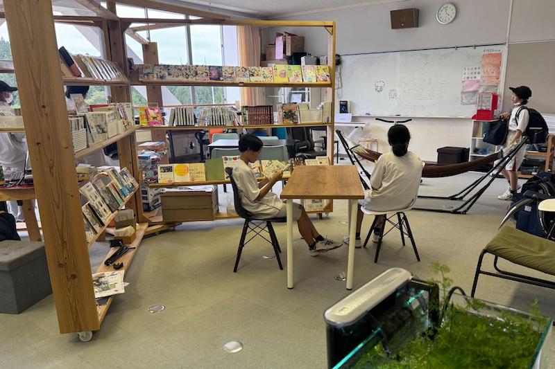 過疎地域に生まれると、都市部との圧倒的な体験格差を感じざるを得ない状況が生じます。例えば、多様な人に関わる経験や学校外での学びの機会など。「そんな中でも子どもたちが自由に未来を創造するために『学ぶこと』に価値を見出してほしい」と、佐藤さん。いまの地域の現状に適した(ローカライズされた)教養をローカルリベラルアーツと定義し、「中学校のときに知っておきたかった」と思う、学校の教科にはない学びの書籍や漫画などを本棚いっぱいに並べています。