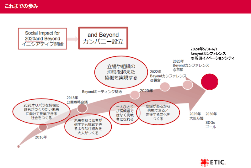 最後に、この5年間、自律分散型の運営で本当に多くのプロジェクトが生まれ推進されるなか、全体の進化を体感するために始めたのが、年に一度の祭典「Beyondカンファレンス」です。誰でも意志ある挑戦をピッチでき、挑戦と応援を体感できる場となっています。