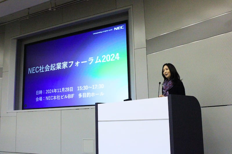 2024年11月28日、「NEC社会起業家フォーラム2024」が開催されました。NECは、2002年にNPO法人ETIC.(以下、エティック)とともに、社会課題に取り組む若手起業家を育成するプログラム「NEC社会起業塾」をスタート。22年間、社会起業家支援を続けてきました。