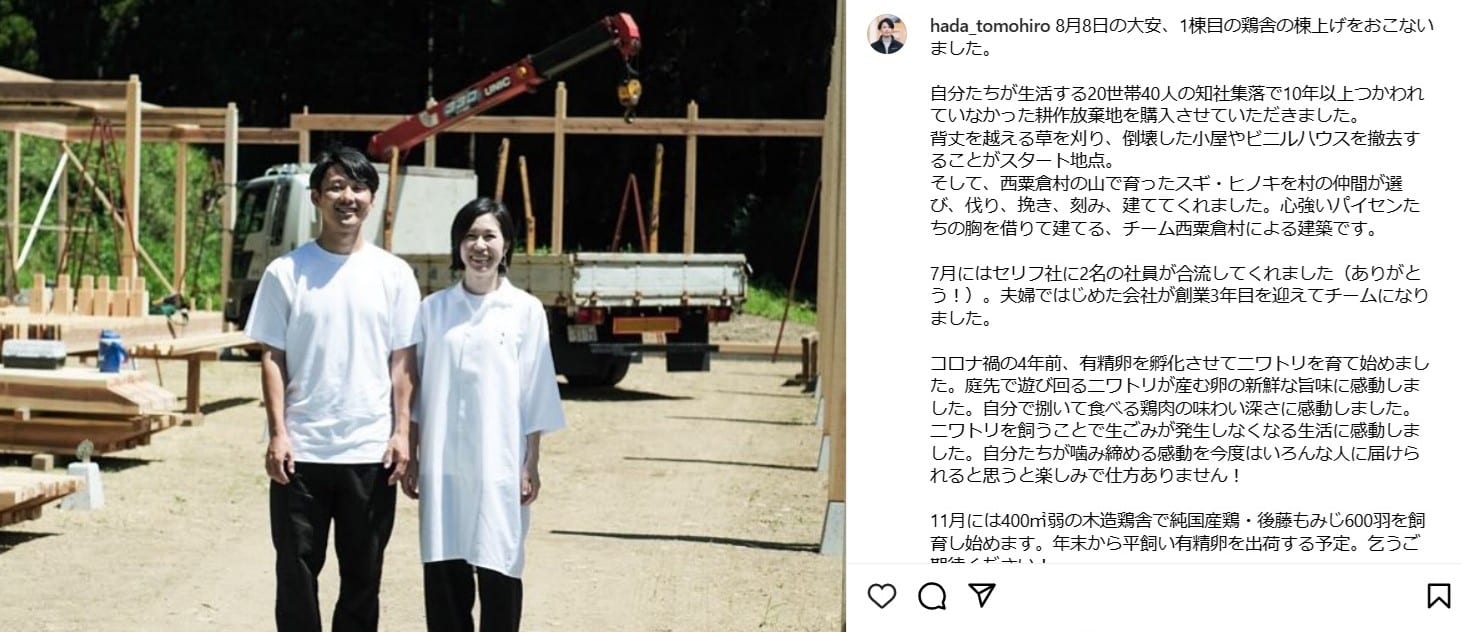 独立後、2022年にフリーデザイナーの妻と合同会社セリフを創業。地域企業に編集やデザインを通して伴走しつつ、2024年11月8日、かねてより準備を進めていた平飼い養鶏事業を本格的にスタートさせました。