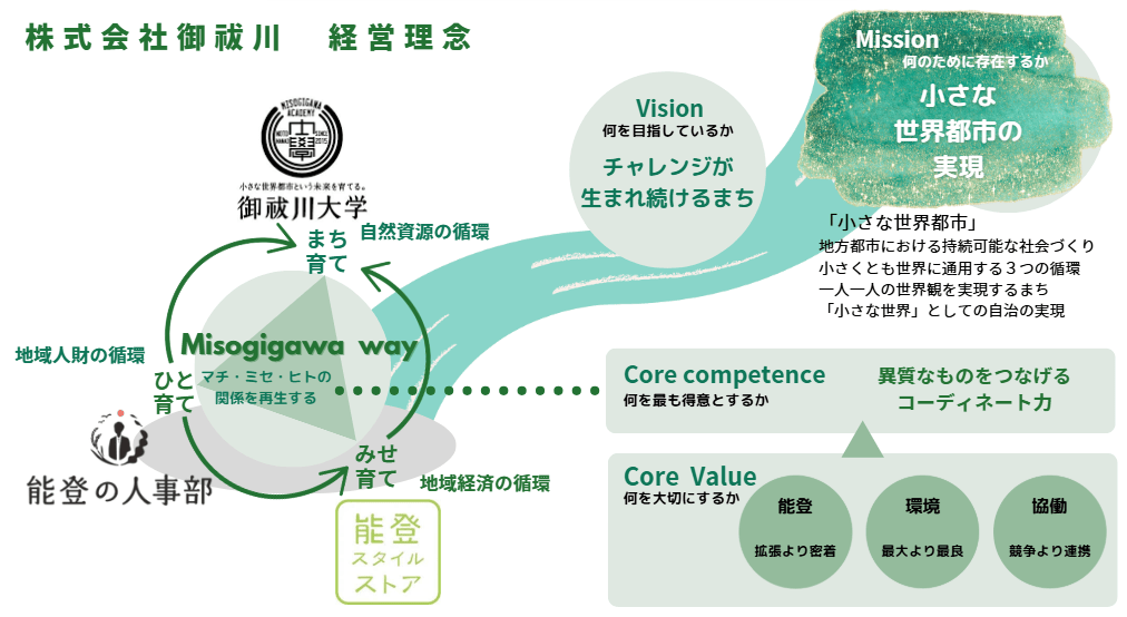 森山 : 株式会社御祓川は、石川県能登エリアを中心に「まち・みせ・ひと」の3つの柱でまちづくりを行う企業です。御祓川(みそぎがわ)の川沿いにお店をつくる事業からスタートし、2007年の能登半島地震をきっかけに中間支援組織としての活動を展開しました。「能登スタイル」や「能登留学」を手掛けながら、一人でも多くの人が地域のための一歩を踏み出せるよう支援をしています。