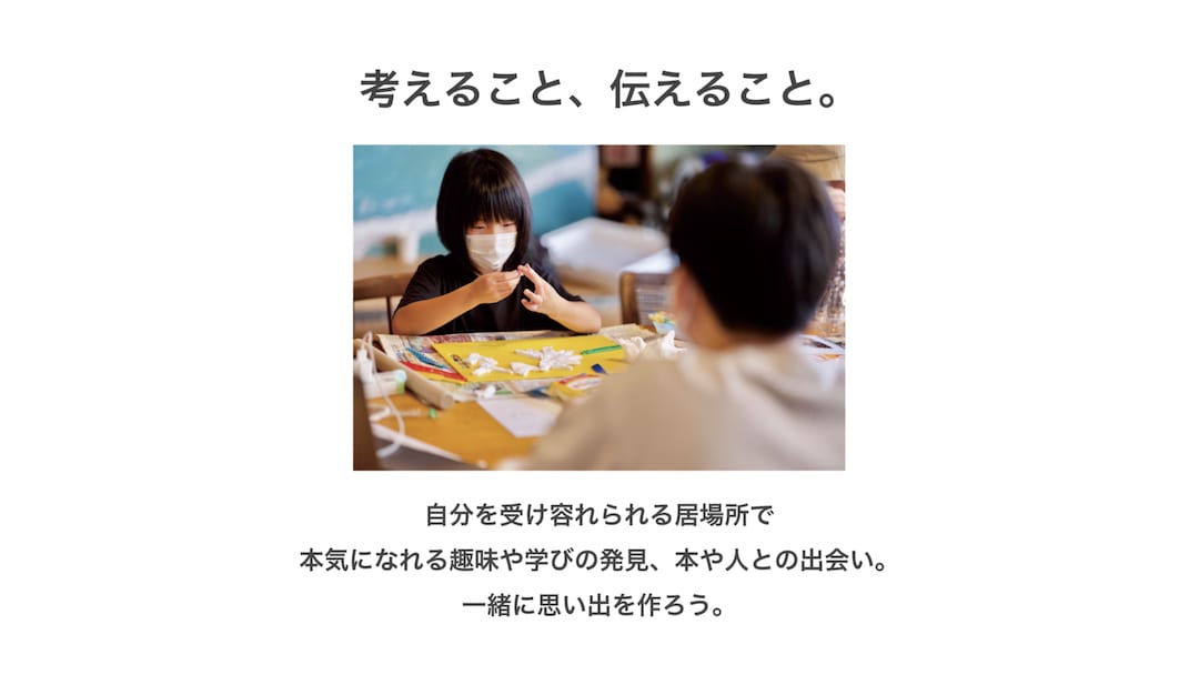 一方で、子どもの学力向上など、成長を促す“セラピー精神”も重要です。このケアとセラピー精神のバランスに向き合い続けることを「居場所づくり」の軸としています。ただ、「居場所づくり」という言葉で活動を切り取り、話題にする社会はあまり美しくないと感じます。新たにつくられた居場所であっても、地域に少しずつ近づいていきたいです。