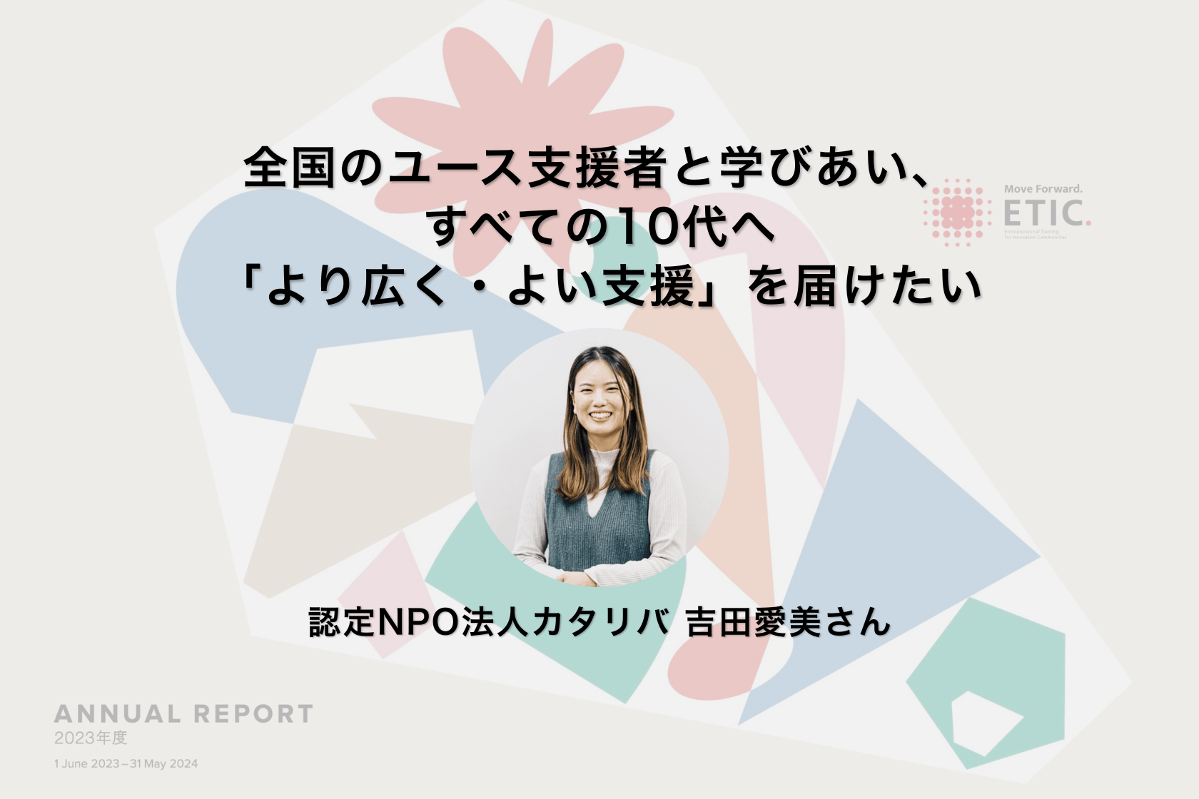 DRIVEを運営するNPO法人ETIC.(エティック)の2023年度アニュアルレポートに掲載された、共創パートナーの声をご紹介いたします。