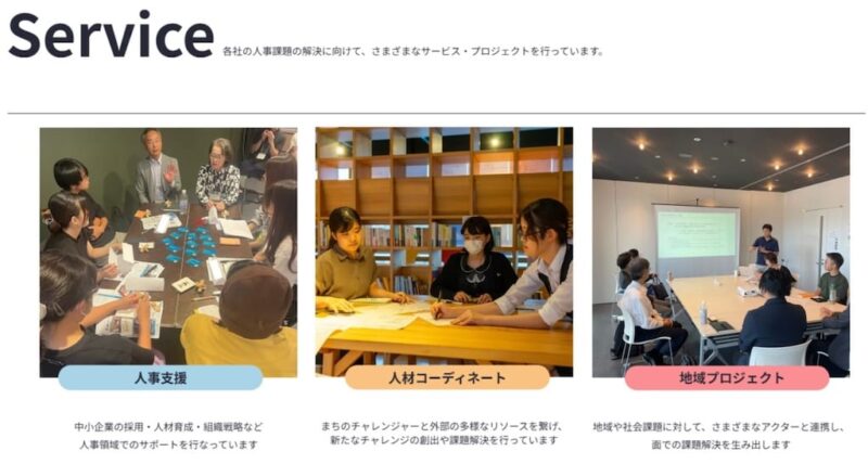 1つ目は、コンサルタントとして採用や社員の育成、組織構築などをサポートする人事支援事業。2つ目は、1カ月程度の大学生のインターンシップや、副業希望者と組織改革などに取り組みたい企業とのマッチング、大企業の管理職を中心とした越境型研修などを行う人材コーディネート事業です。