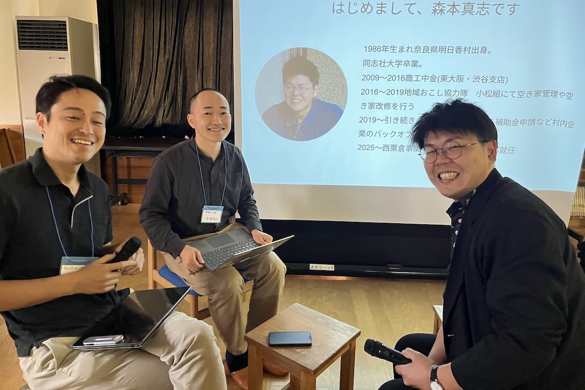 人口約1,300人の岡山県西粟倉村、5万6,000人台の宮城県気仙沼市、そして自治体を越えてエリア全体で取り組んでいる、人口10万人規模の石川県能登地方を順に紹介することで、エリア特性や人口規模によるパターンの違いや、共通するエッセンスをつかんでもらえれば幸いです。それでは、まずは西粟倉村の森本さんからお願いします。