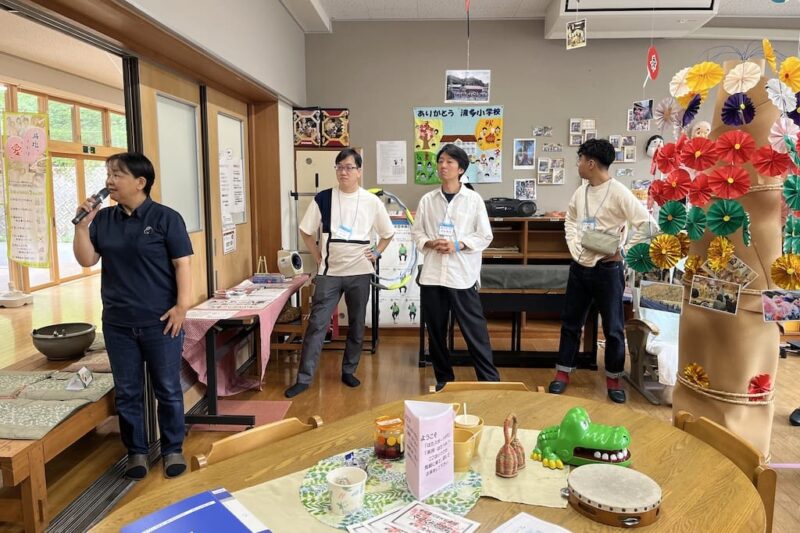 フィールドワークが実施された6地区の中でも、波多・松笠地区は雲南市の中心部から車で約40分と距離があり、人口減少や高齢化も特に進んでいるエリアです。今回のフィールドワークでは、2008年3月に閉校した旧波多小学校を活用して設置されている、波多交流センターを訪れました。