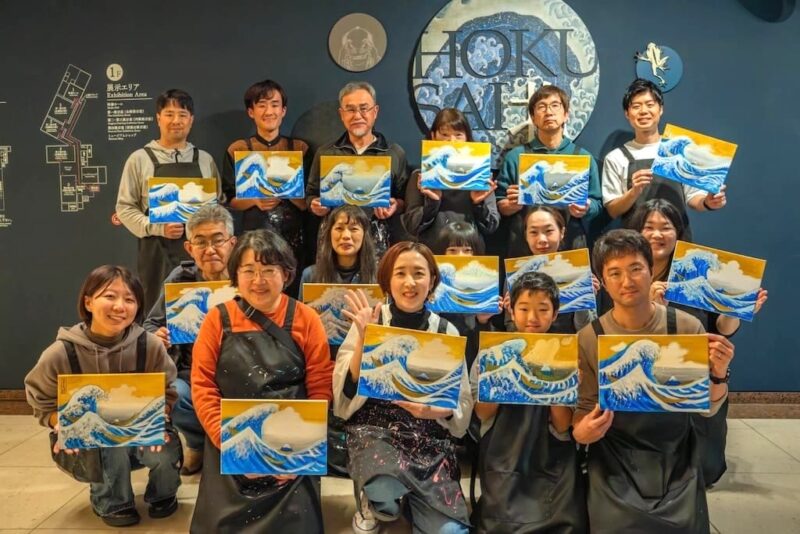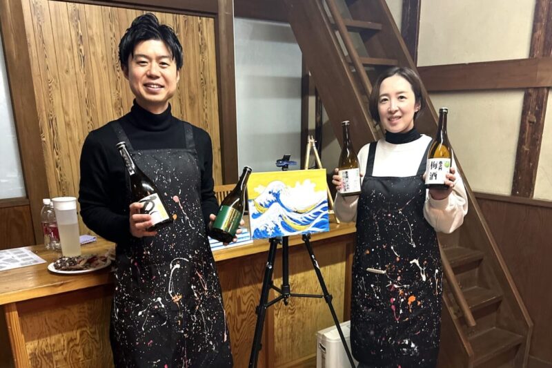 「長野は新潟に次ぐ日本第2位の酒蔵数を誇る地域です。2026年1月には、長野市の善光寺の門前町にある歴史ある酒蔵『善光寺外苑 西之門 よしのや』とコラボし、酒蔵のなかで日本酒を飲みながら葛飾北斎の絵を描くイベントを企画しました」