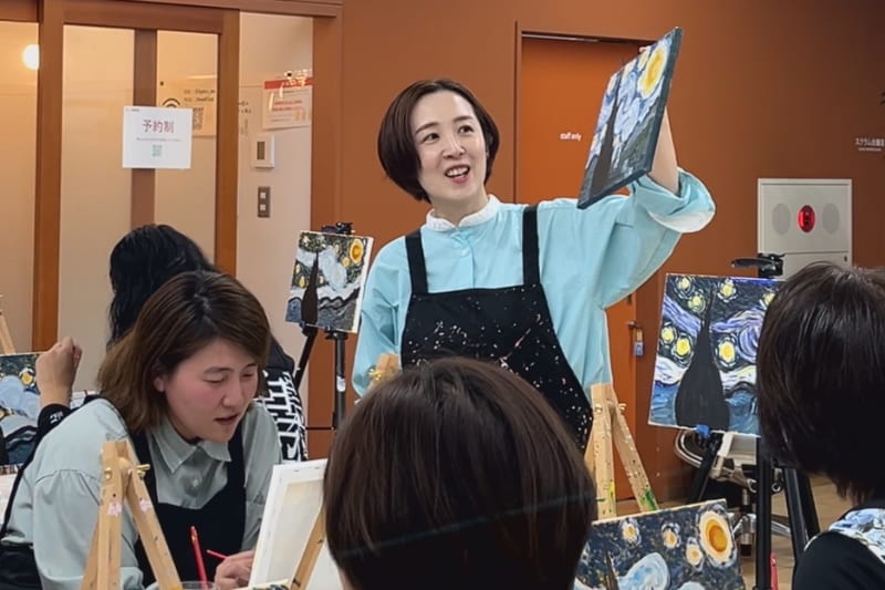 私たちが行う『SAKE ART』では、インストラクターが順番に描き方のポイントを教えていくので、初心者でも作品が完成できます。技術の向上を目指す絵画教室ではなく、『自分にも描けた!』という自己肯定感を得られる交流の場を意識しています」