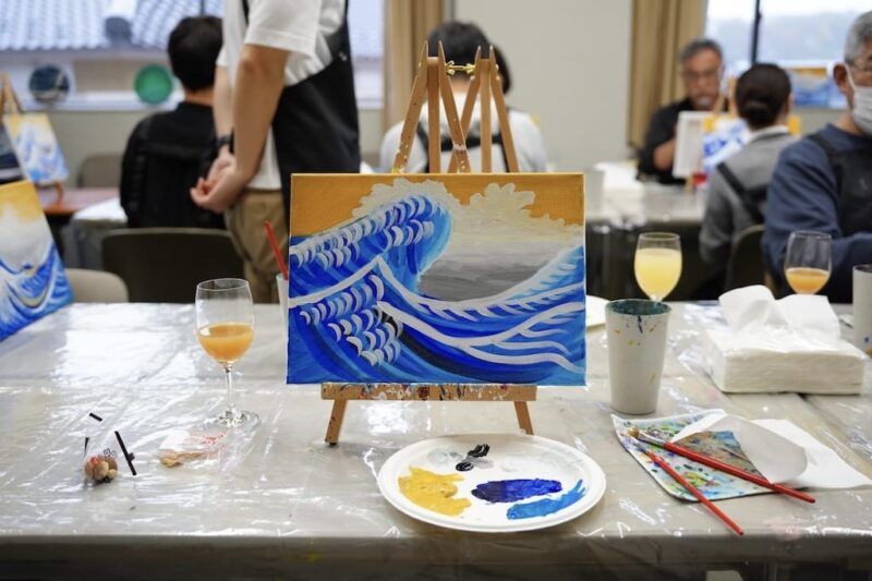 さらに、オンラインでの展開も検討中です。画材やお酒を事前に送り、オンラインでインストラクターのレクチャーを受けながら絵を描くこともできます。海外から長野のイベントに参加した方が、帰国後にオンラインで長野のお酒を飲みながら北斎を描くといった展開も視野に入れています。