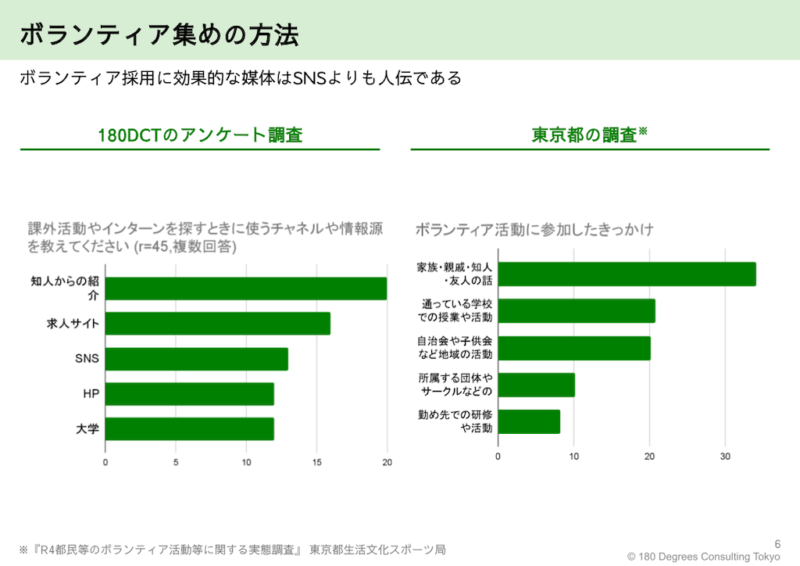 興味深い結果として、ボランティア参加のきっかけを調べた調査では、最も多かったのは「知人からの紹介」でした。
