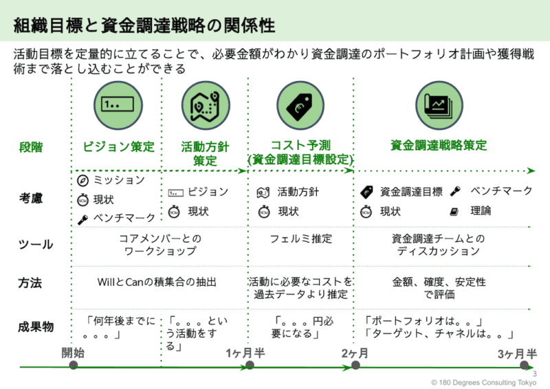 例えば、「活動規模をどこまで広げるのか」「支援対象をどの程度増やすのか」「資金調達はどの程度必要なのか」といった判断ができなくなります。