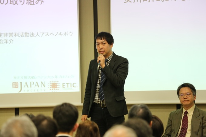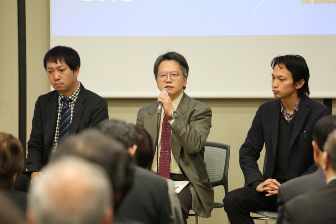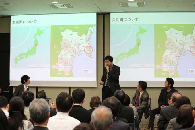 石川は3人の報告を受けて、「こうしたデータをどう活用するか、ということが課題ですね」と問題提起しました。 8 小松氏は「たとえば『人口を2040年までにどう増やすか? 20代や30代の人を増やすことと40代、50代の人を増やすこととでは、将来の人口動態への影響が異なるのではないか?」といった課題について、勉強会なども開きながら、データをもとに取り組んでいこうと議論しています」と女川町での様子を写真もまじえて伝えました。 辻内氏はNPOの取り組み2例を聞いて「頭が下がる思い」だと言い、「1万人の声を集めておきながら、学術だけで使っていてはほんとにもったいないです。『こんな風に使ってみたらどうか?』というお知恵をいただきたいと思っています」と呼びかけました。