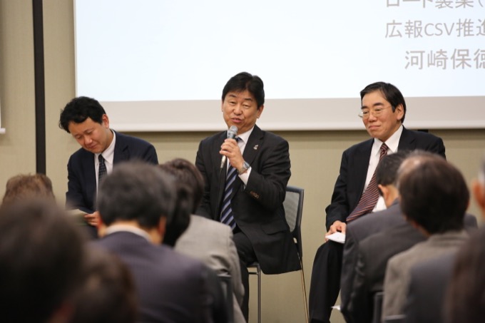 山内が3人に「これまで難しかったことは何でしょうか?」と尋ねると、池田氏は「現地のニーズをどうとらえるか、ということでした。自己満足にしたくはありませんでした。東北の社員やNPOとも積極的に連携しながら、効果的にやろうとしてきました」と言います。 7 河崎氏は「基金をつくったのはいいのですが、使い途への懸念がありました。株主から叱られるかと思ったら、総会では『よくやった!』といわれました」と振り返ります。