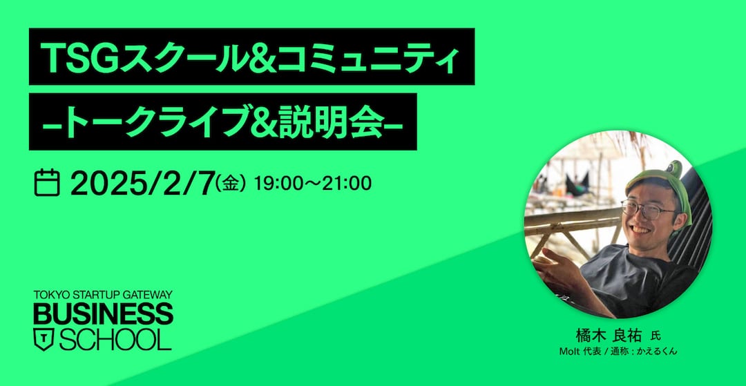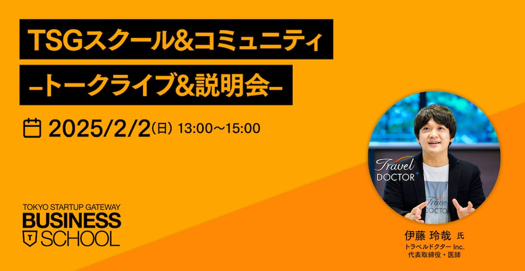 【2/2(日)オンライン】TOKYO STARTUP GATEWAYビジネススクール –起業家トークライブ&説明会–