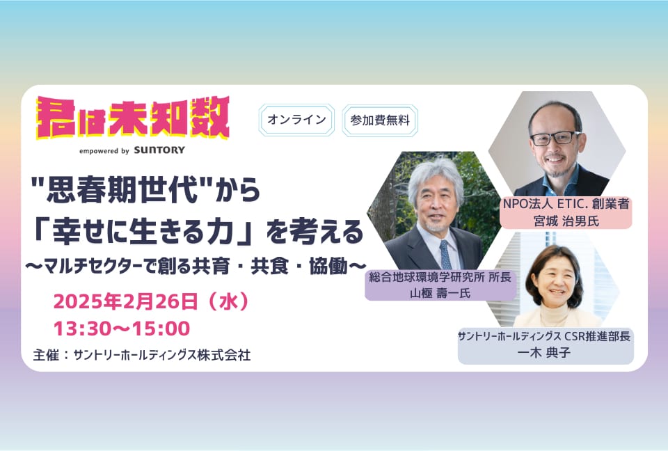 サントリー「次世代エンパワメント活動“君は未知数”」オンラインイベント 「“思春期世代”から『幸せに生きる力』を考える〜マルチセクターで創る共食・共育・協働〜」