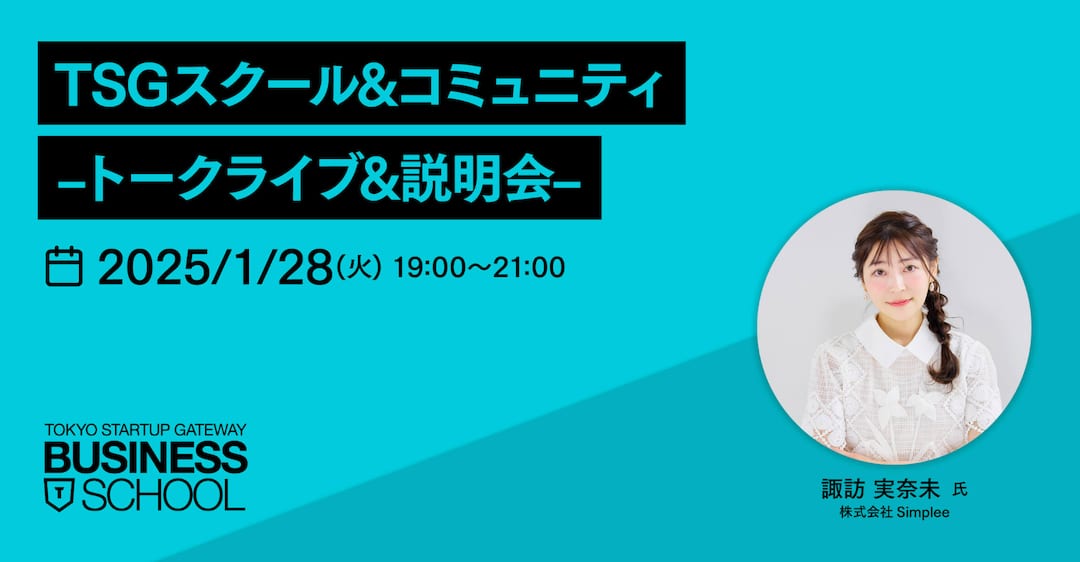 【1/28(火)オンライン】TOKYO STARTUP GATEWAYビジネススクール –起業家トークライブ&説明会–