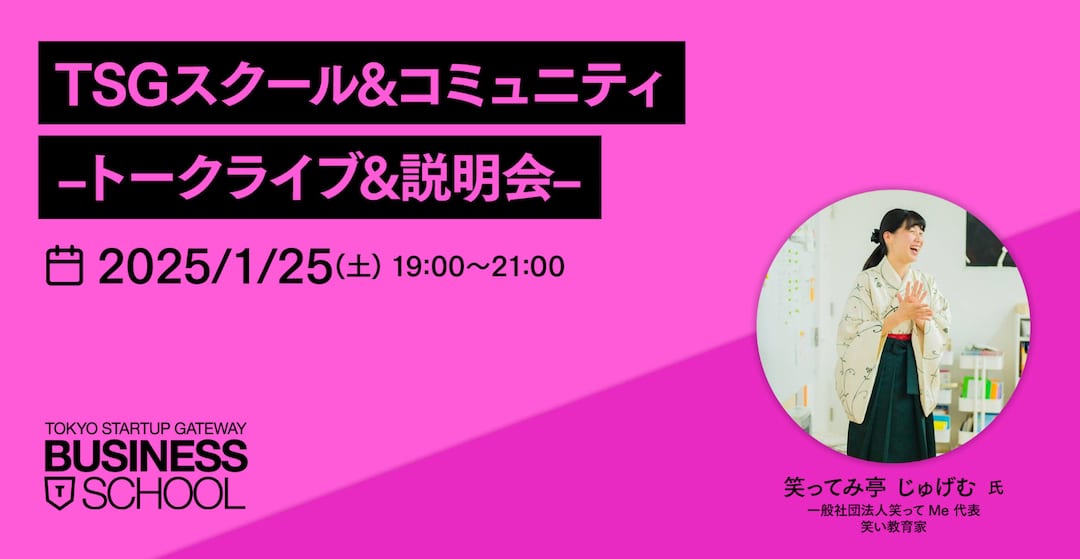【1/25(土)オンライン】 TOKYO STARTUP GATEWAYビジネススクール –起業家トークライブ&説明会–