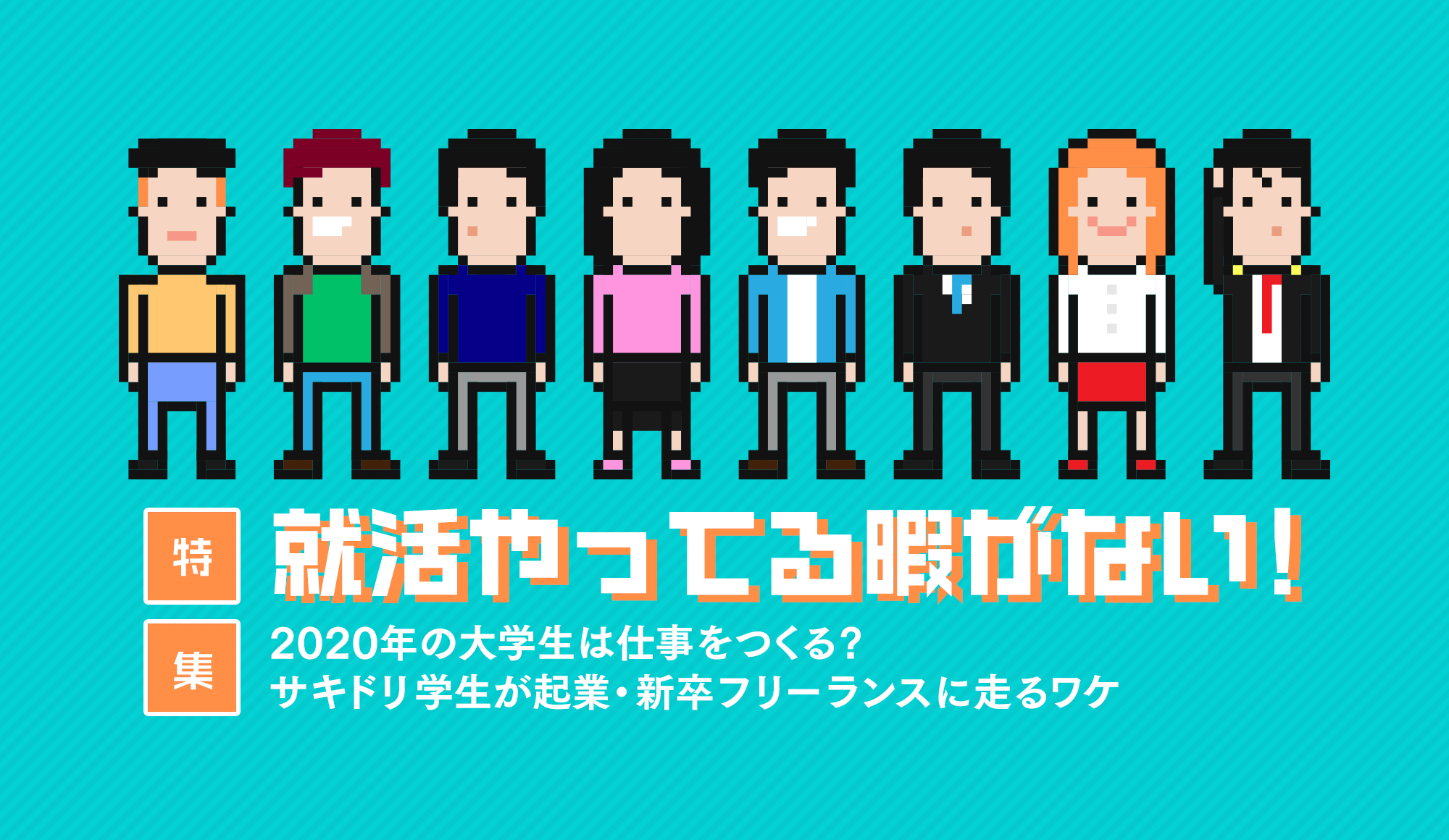 就活やってる暇がない! 「就活」して企業で働くよりも、自分のテーマで仕事をつくりたい。 好きなことを追い求めていたら、起業してた。 いま、そんな学生が増えてきているようです。 学生のうちに、「ファッション」「スポーツ」「歴史」「みかん」という関心ごとで起業をした4人や、「就活向いていない」「サラリーマン怖い」という理由で新卒フリーランスを選んだ2人など、「就活」とは違う道をゆく大学生たちは様々です。 この道、けっこう楽しそうじゃありませんか? とはいえ、まだまだイバラの道のように感じる方も多いはず。 まずは、インタビューから彼らの頭の中を一緒にのぞいてみませんか? 2016.11.022025.10.20