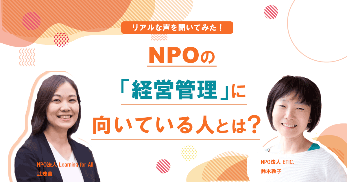経営・組織論 NPOの「経営管理」に向いている人とは?LFA辻氏×ETIC.鈴木が本音で語る役割と条件